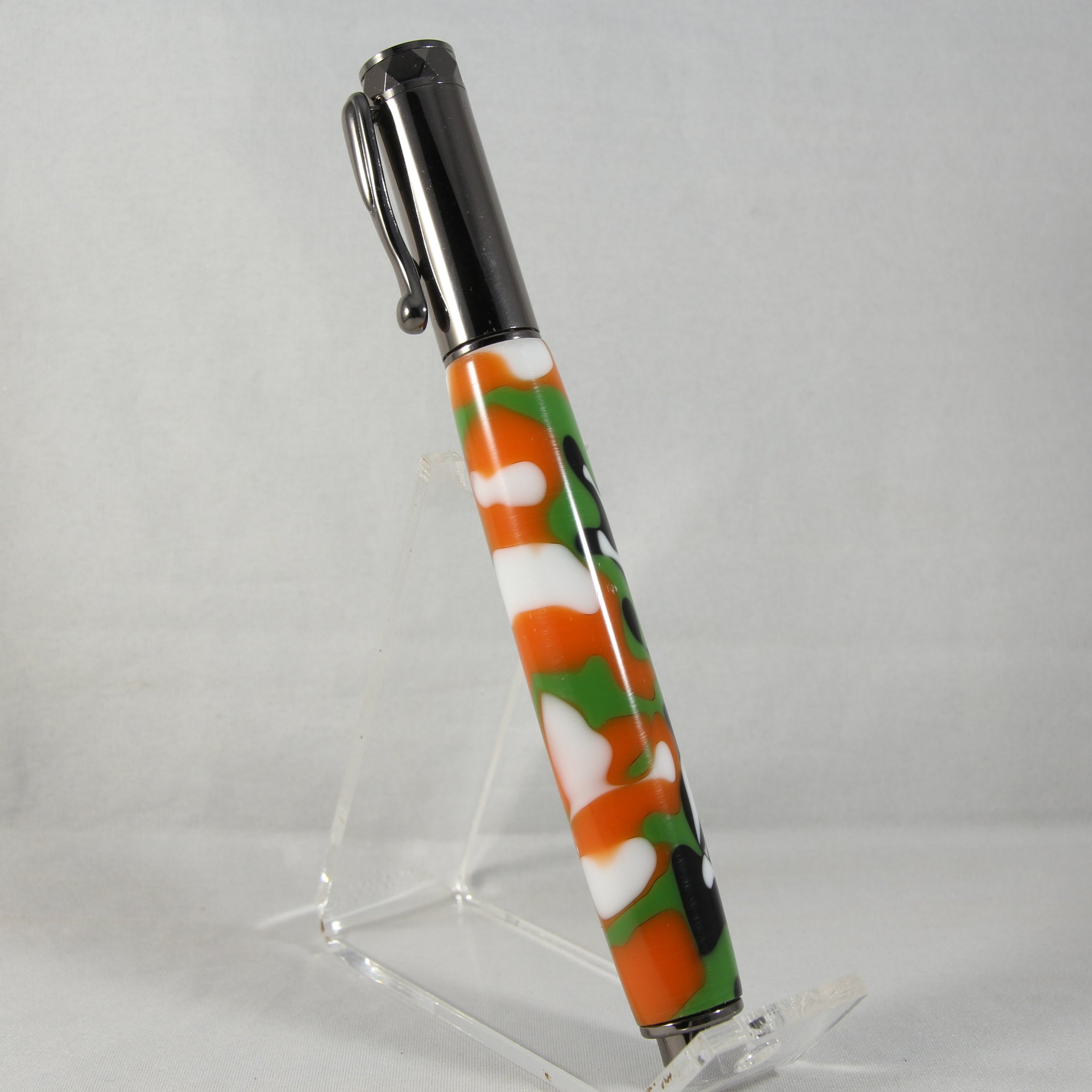MR-AG Magnetic Rollerball Green, Orange and White Acrylic With Gun Metal Trim