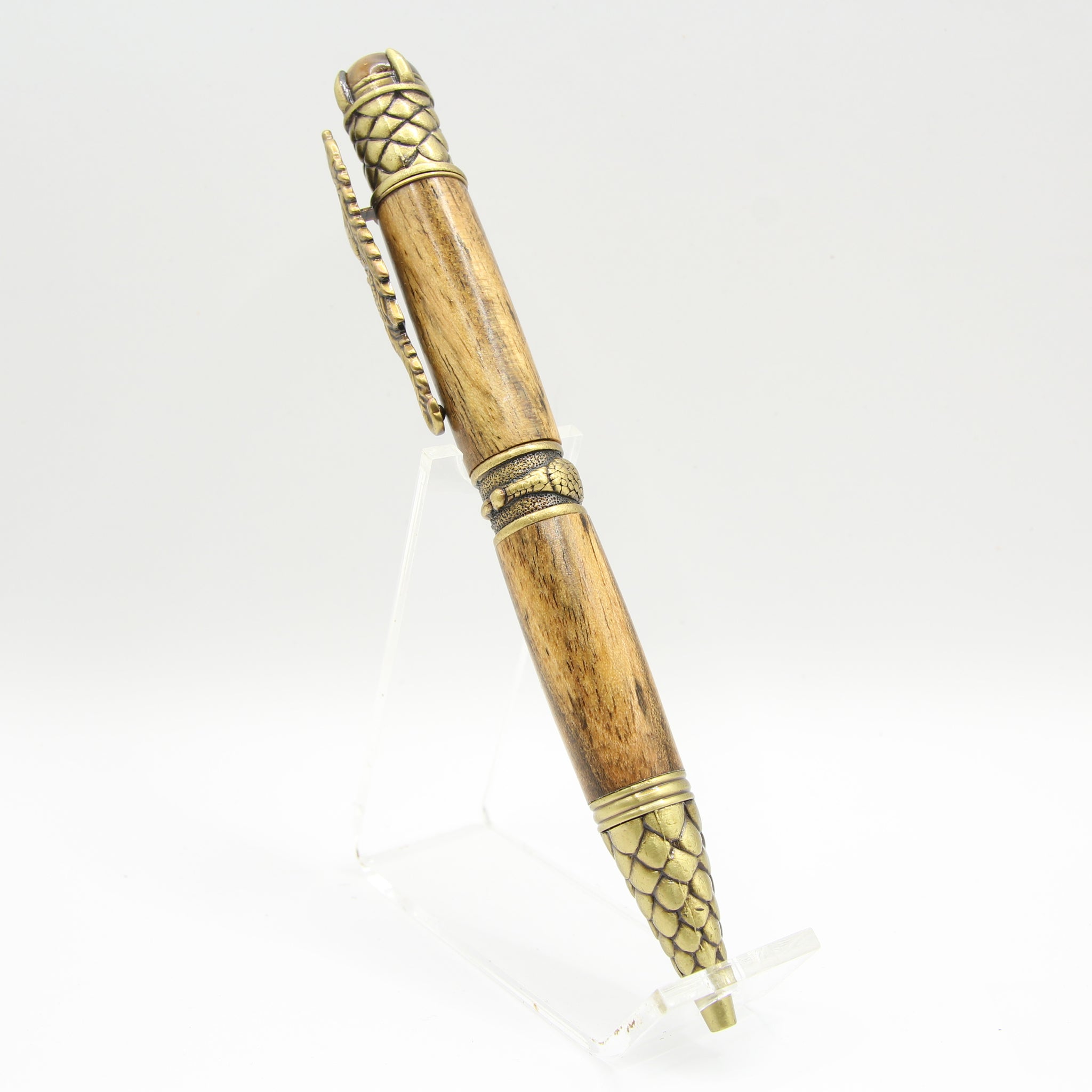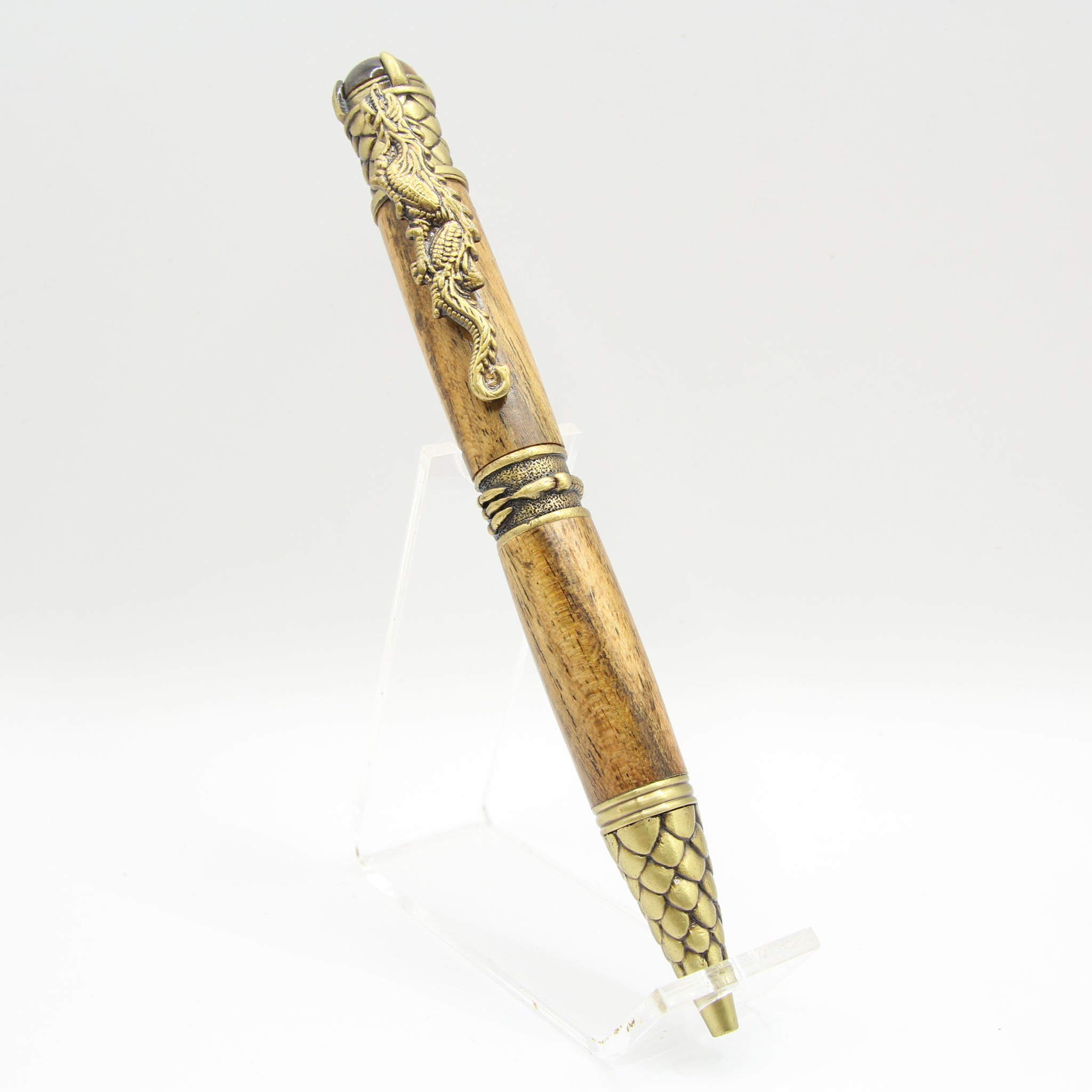 Unleash the legend with the Dragon Pen. Featuring a full-body Chinese dragon clip, armored scale textures, and a genuine Tigers Eye crystal, this beautifully sculpted fantasy pen is the ultimate gift for dragon lovers. Shop the symbol of strength. Dramatic, powerful, and steeped in mythology, the Dragon Pen is a masterpiece of fantasy-inspired design. Every inch of this writing instrument has been sculpted with exquisite attention to detail, transforming a simple tool into a talisman of strength and willpower.