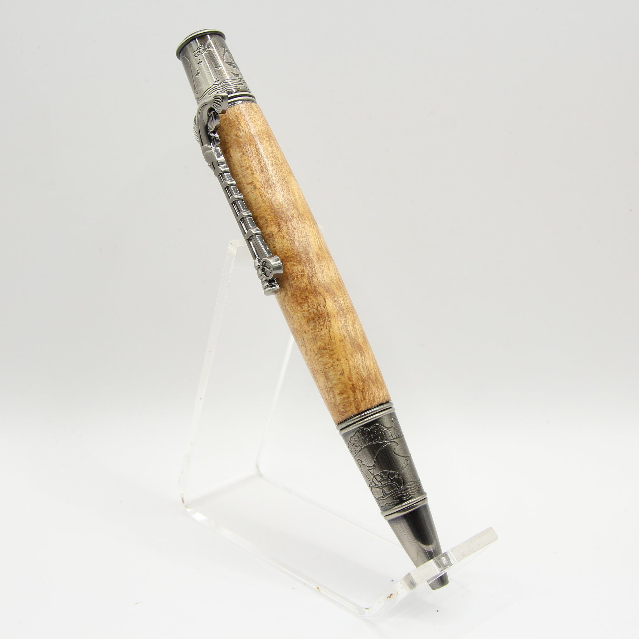 FF-FC Fishing Curly Maple Twist Pen with Antique Pewter Trim