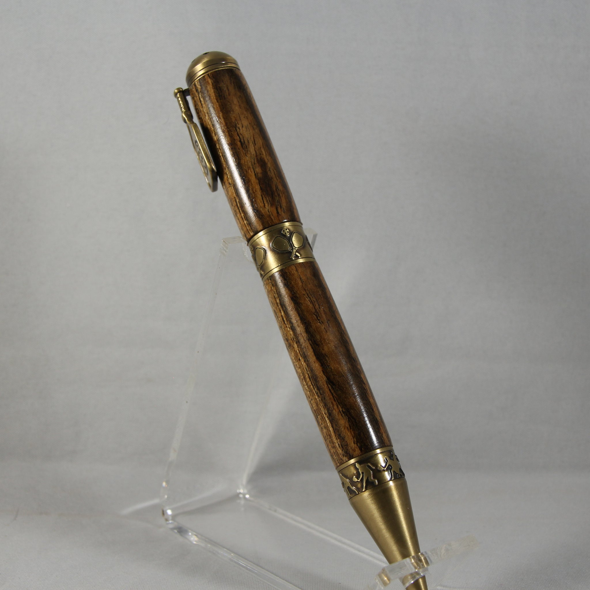PKB-B Pickleball Bocote Twist Pen With Antique Brass Trim