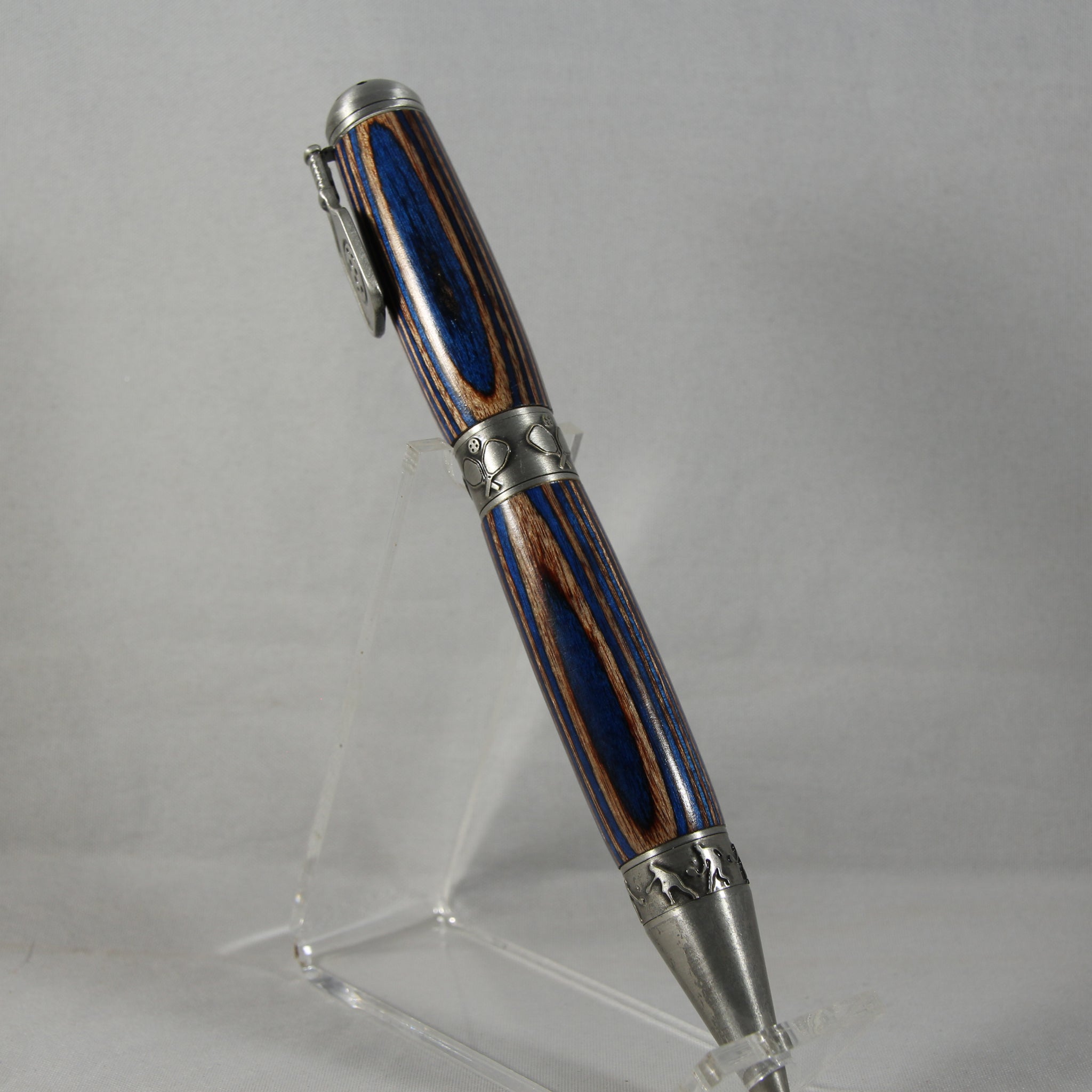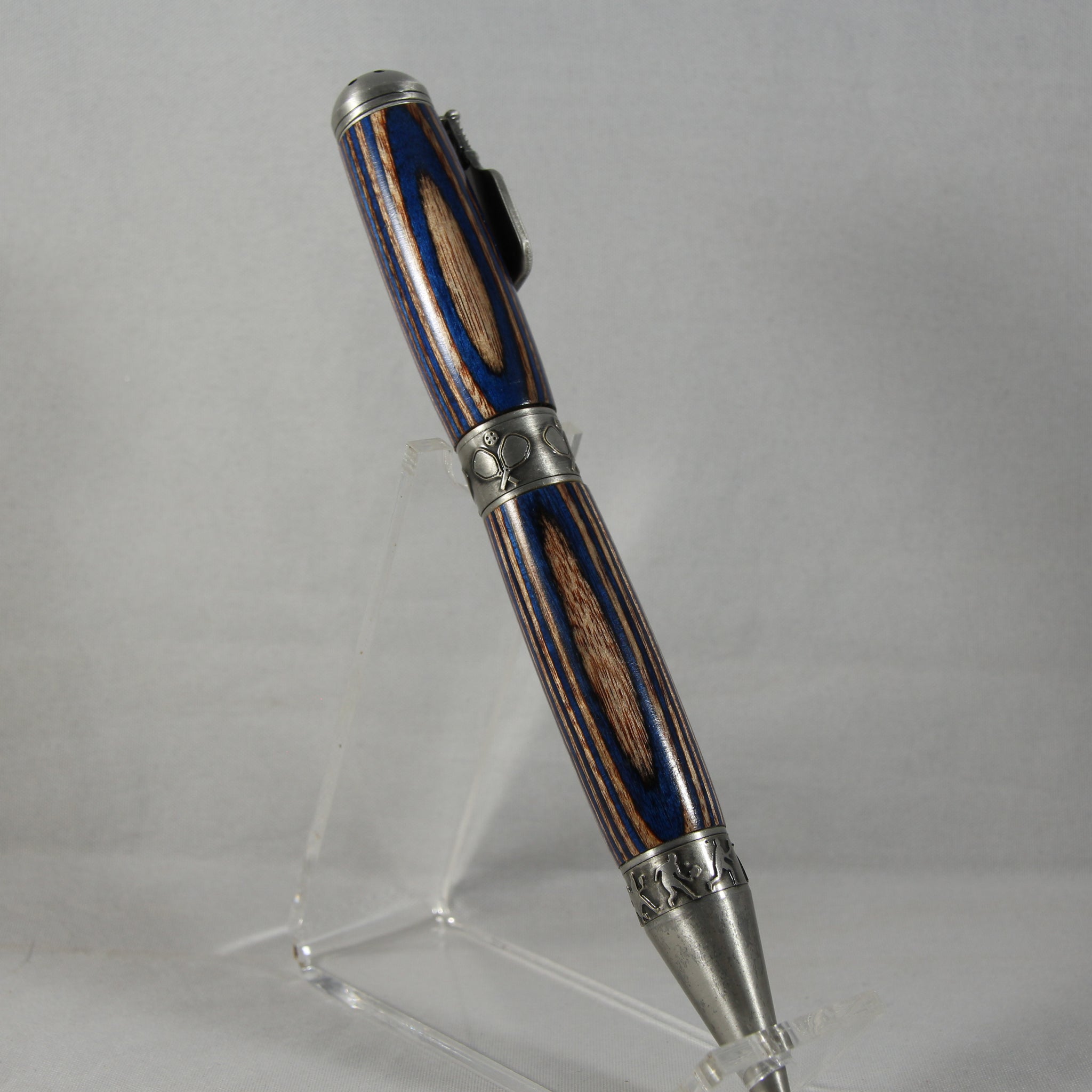 PKB-D Pickleball Blue and Brown Laminate Twist Pen With Antique Pewter Trim
