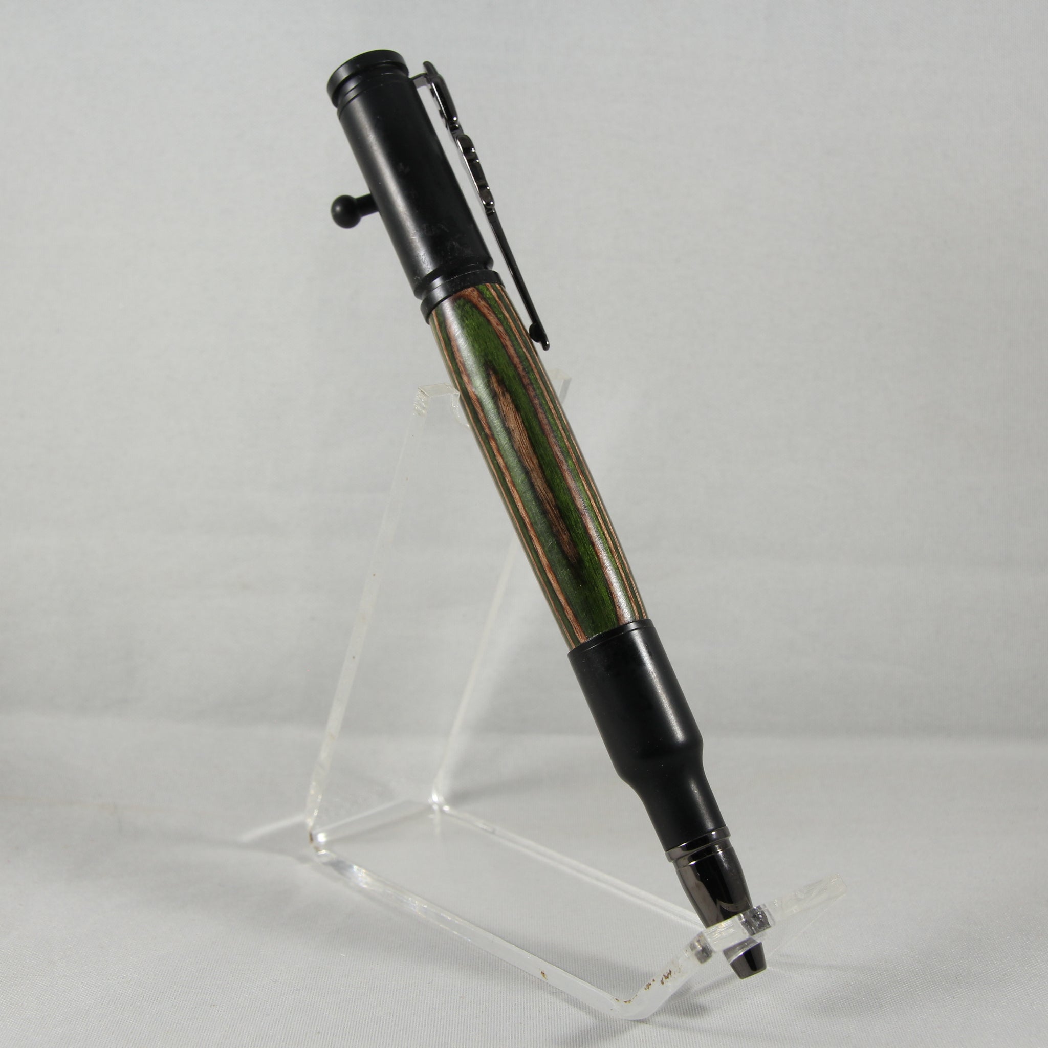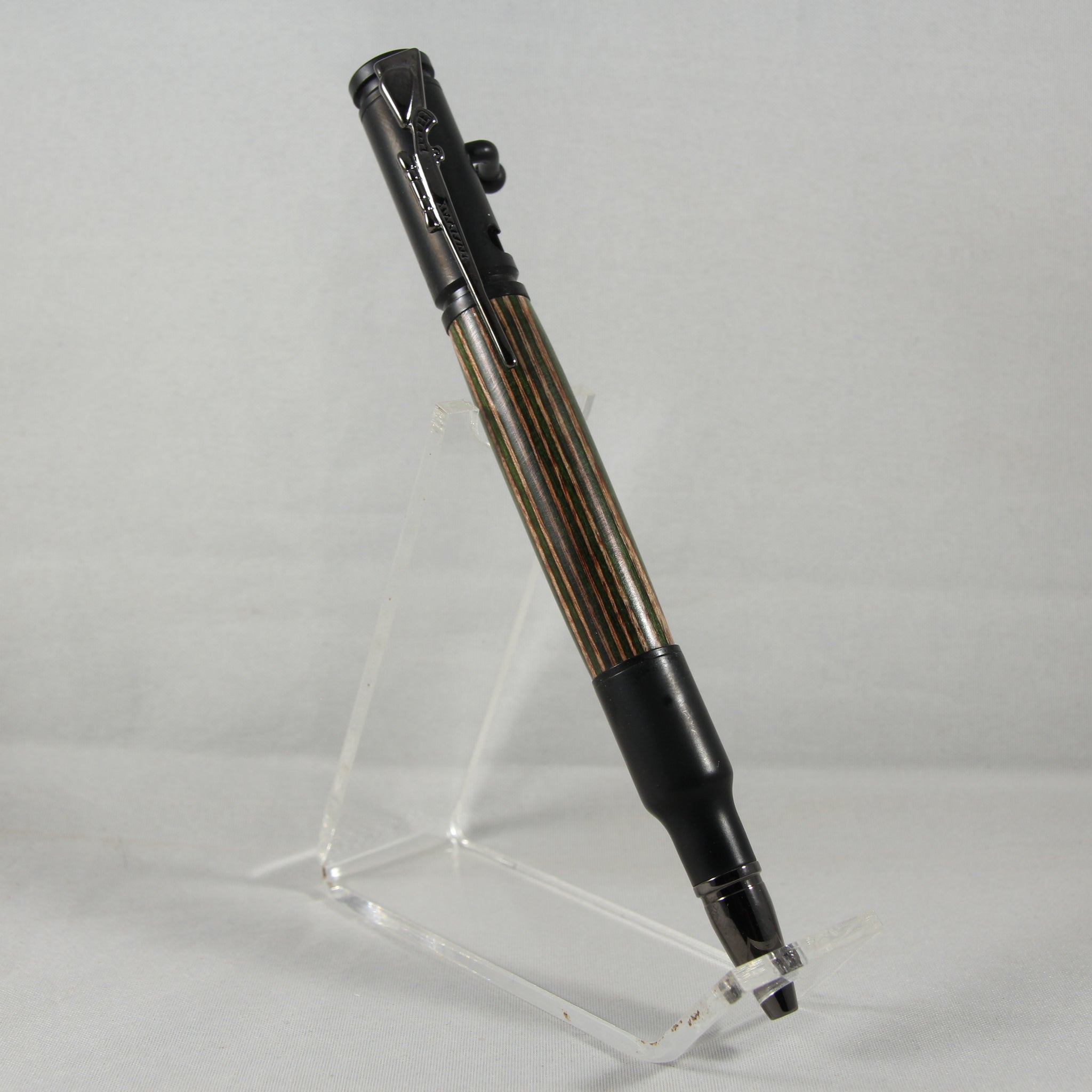 The Bolt Action pen is designed to ensure uniqueness and reliability. The realistic bolt-action will be hard for any hunting or target-shooting enthusiast to put down. The Bolt Action handle smoothly advances and retracts to securely lock the refill in place. Includes a bolt action rifle clip and a replica 30 caliber cartridge.