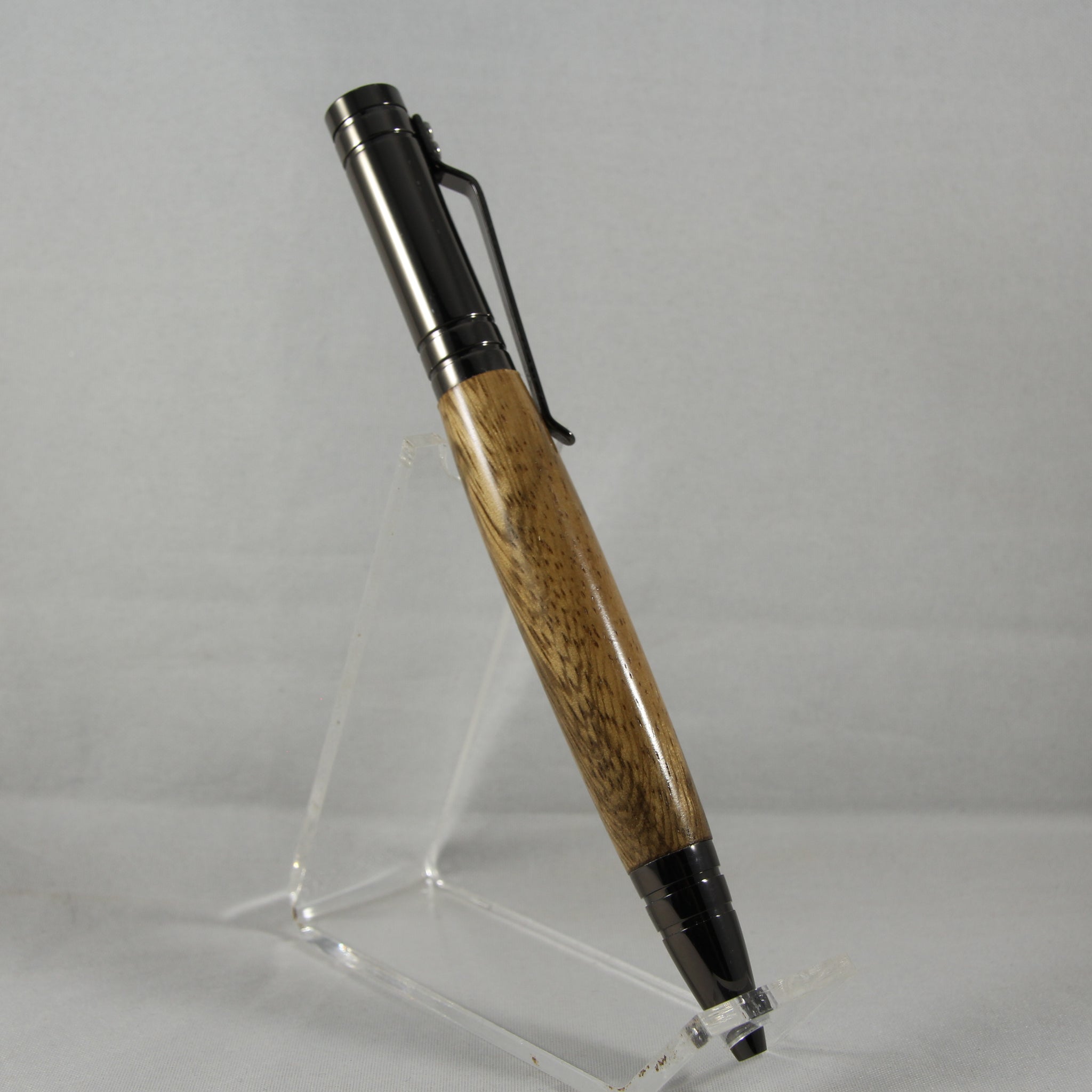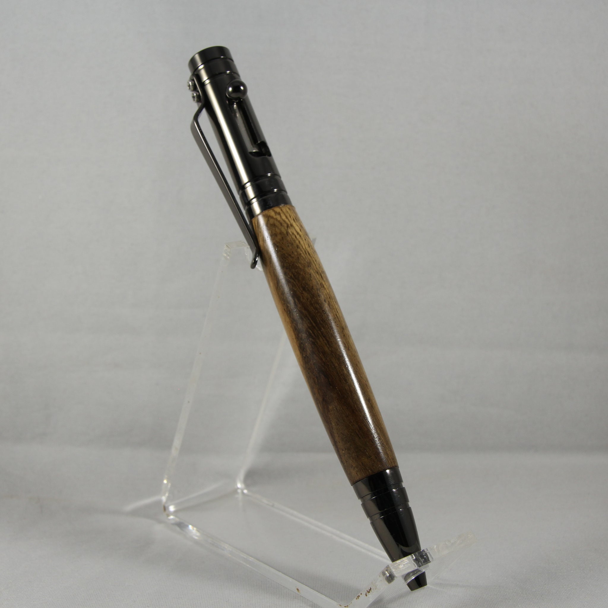 The Bolt Action Tec is a sleek pen with the modern look. It's reliable bolt-action mechanism that smoothly advances and retracts the refill for consistent performance and sturdy clip attached to the body with small screws. Includes an end cap and stylus for assembly options.